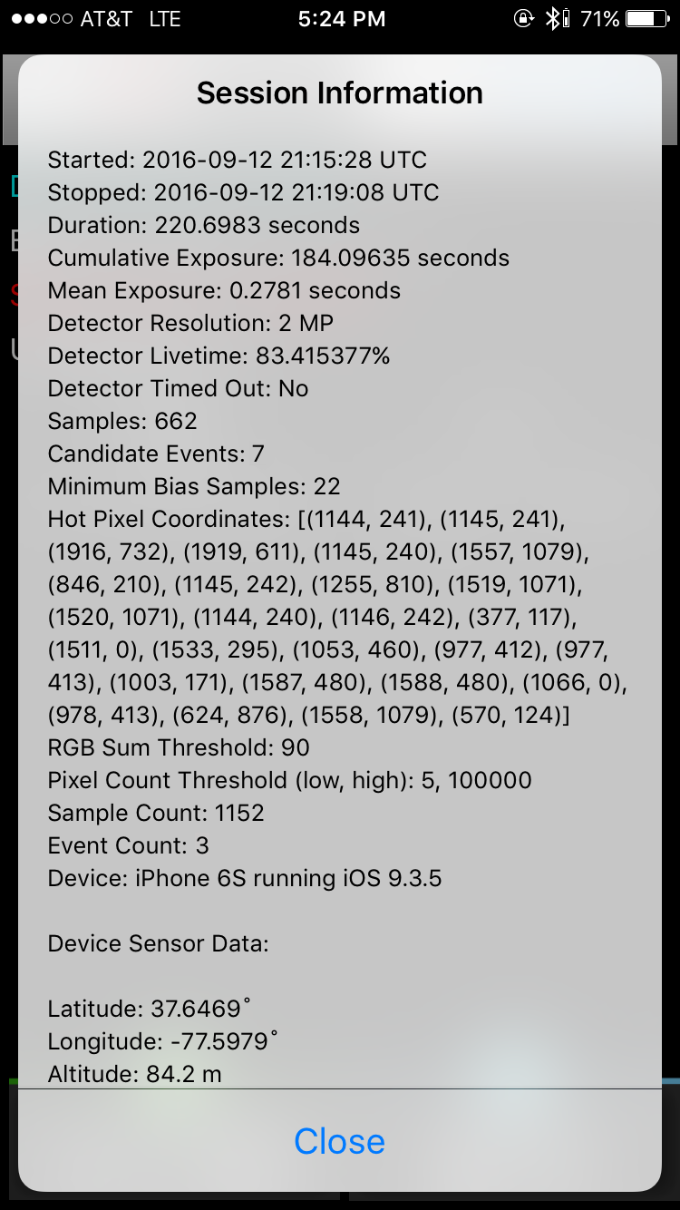 Solution & Contribution: Joining the DECO team in June 2015 led by Professor Justin Vandenbroucke — sponsored by the American Physical Society and jointly funded by the NSF & the US Department of Energy — I designed and developed the iOS version of the Distributed Electronic Cosmic-ray Observatory, a global network of smartphones monitoring their respective cameras for signatures of cosmic rays from the farthest reaches of space (e.g., muons, Coulomb scattering from incident gamma rays), deploying through TestFlight to hundreds of beta testers world-wide from CERN to WIPAC to SLAC. My time there led to 2 conference publications and 1 journal publication.